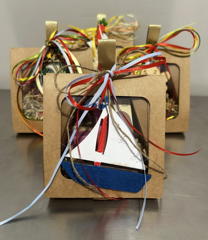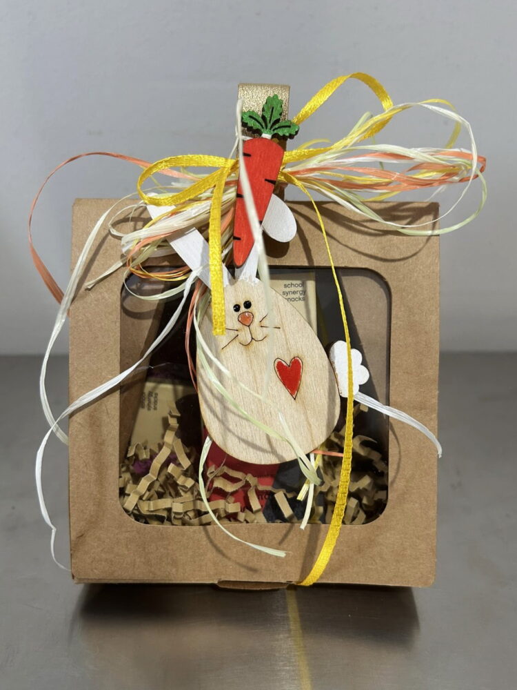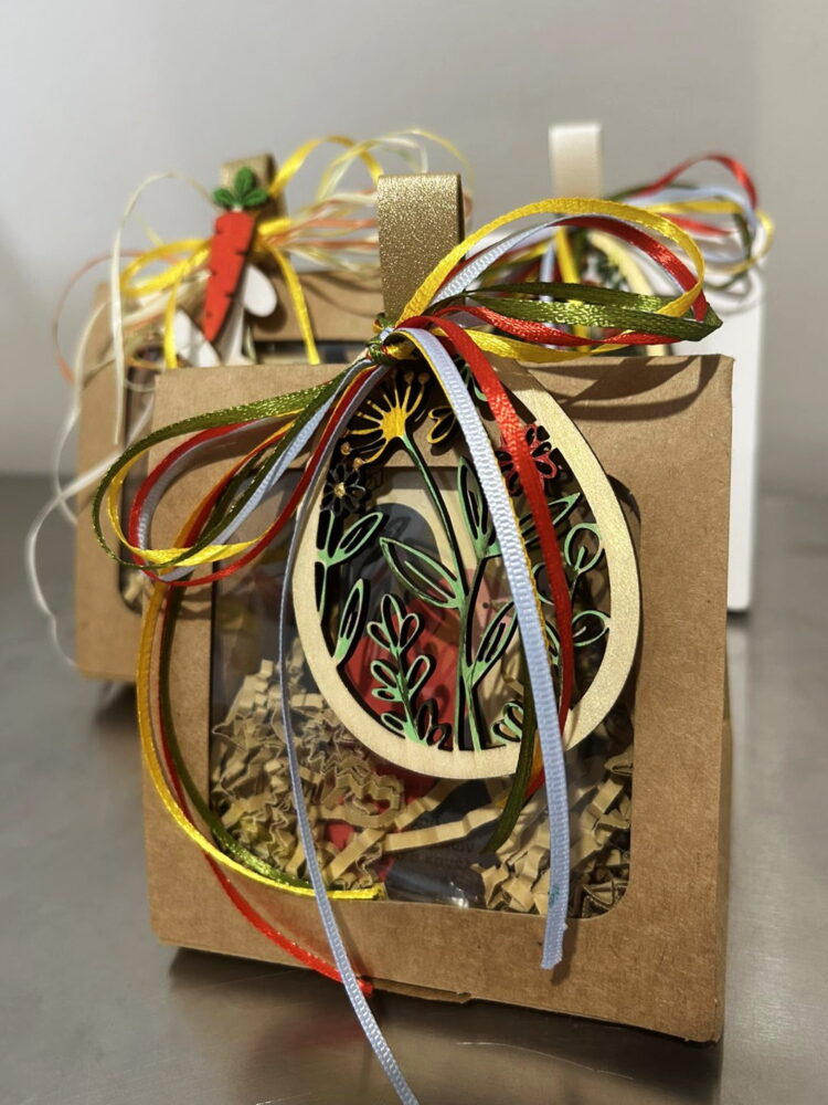 • Χάρτινη συσκευασία δώρου των 3 τεμαχίων με χειροποίητη πασχαλινή διακόσμηση από τα μέλη – εργαζόμενους της ΚοινΣΕπ.
